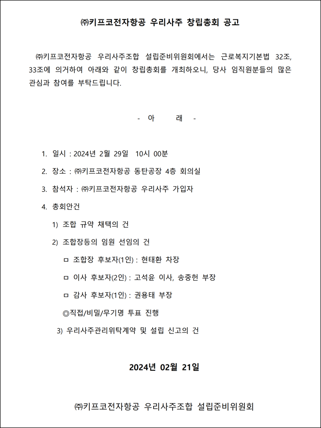 [공고] 우리사주 창립총회 공고_20240221